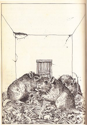 I shouldn't judge too harshly though - this is book #1, and 1982 was back in the early days of role-playing when corridors connecting a series of rooms containing monsters guarding boxes holding traps and/or treasure was what it was all about. Excepting the maze, it's pretty fun to play, and with a little charitable imagination you can imagine explanations for out-of-place stuff like the candle shop and the poker-playing midgets in the maze (oh, did I not mention them?) And the apparent incoherence of goings-on within the dungeon is fairly consistent with the notion that you're just some guy breaking and entering, which is exactly the case.