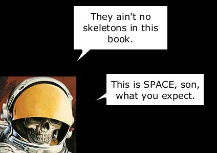 And reprising his award-winning role from Starship Traveller, here we have the "No Skeletons, Dummy, It's Sci-Fi" SKELETON: